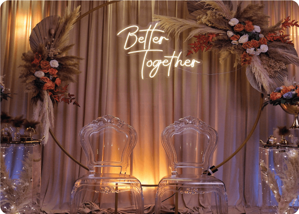 Havana Night, altın halka formunu soft tül fon, sıcak amber ışık ve çiçek kompozisyonlarıyla tamamlayan, mekâna derinlik ve premium bir gece atmosferi kazandıran konsepttir. Evde nişan ve evde söz organizasyonlarında fotoğraf çekimleri için net, şık ve güçlü bir arka plan sunar.