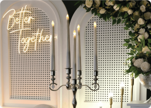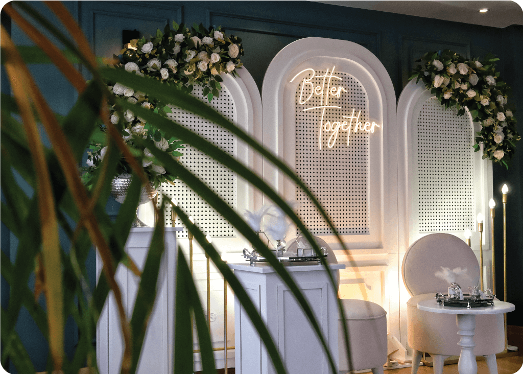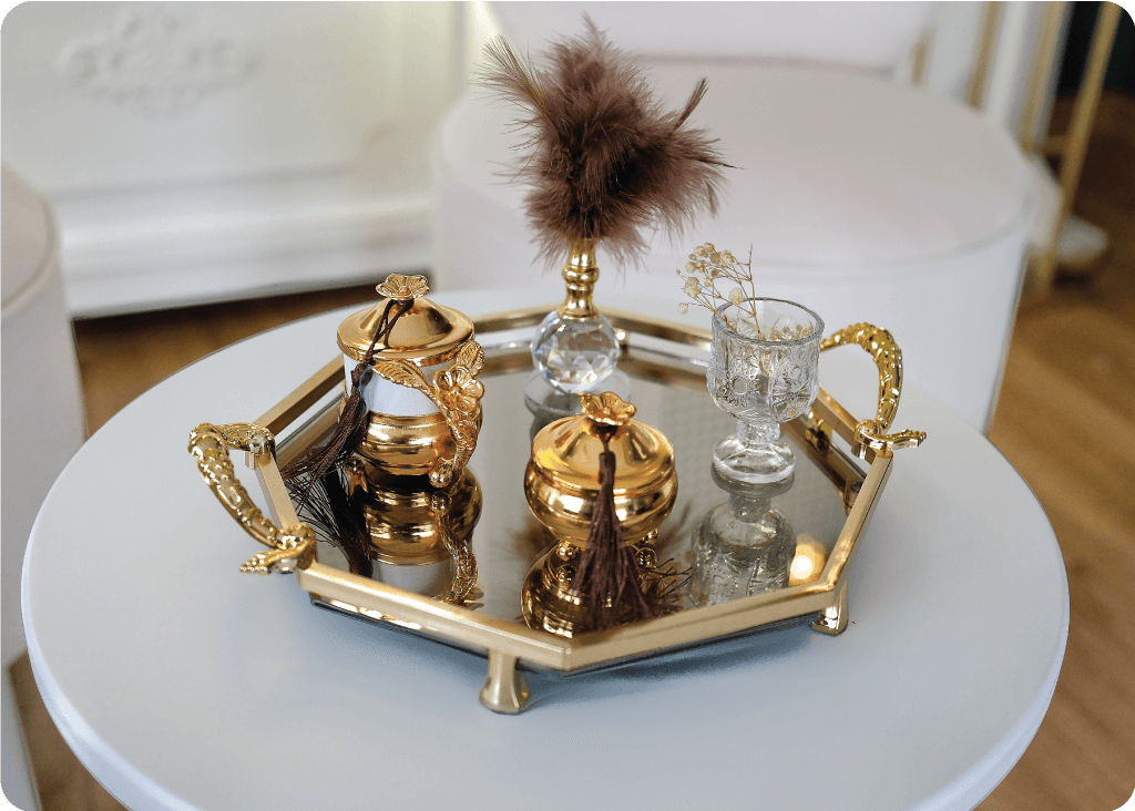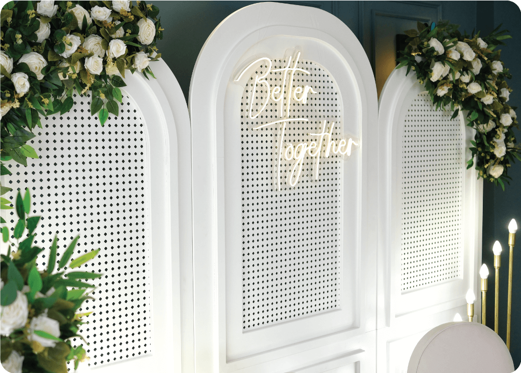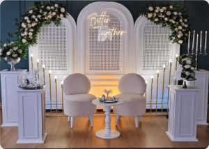 Hazaran, klasik mimari formların doğal yeşil dokular ve yumuşak krem tonlarıyla bir araya geldiği, dengeli ve rafine bir konsepttir. Kemerli arka plan yapısı ve simetrik yerleşimi sayesinde mekânda düzenli, güçlü ve kurumsal bir estetik algı oluşturur. Doğallığı ön planda tutarken zarafetten ödün vermeyen bu yaklaşım, nişan ve söz organizasyonlarında sade ama prestijli bir atmosfer hedefleyenler için konumlandırılmıştır. Zamansız şıklığı, fotoğraf ve video çekimlerinde net, temiz ve etkileyici sonuçlar sunacak şekilde tasarlanmıştır.